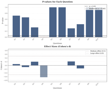 The change in Q4 (forgetting to take medication) shows a medium effect size (Cohen's d = -0.633), indicating a meaningful practical difference (Figure 5).